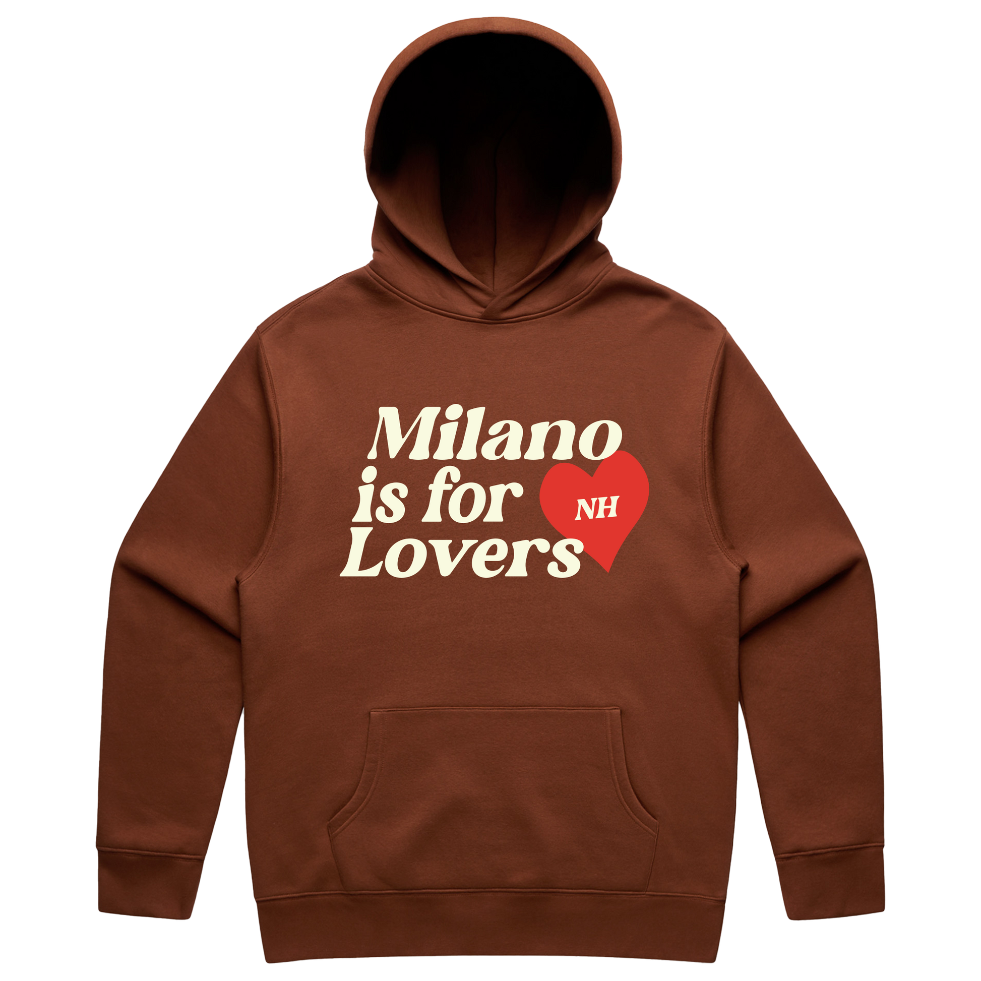 Milano Is For Lovers Hoodie in clay ringspun cotton and polyester.