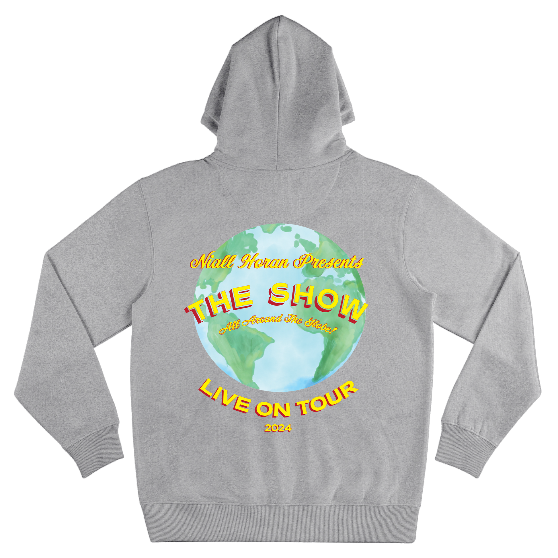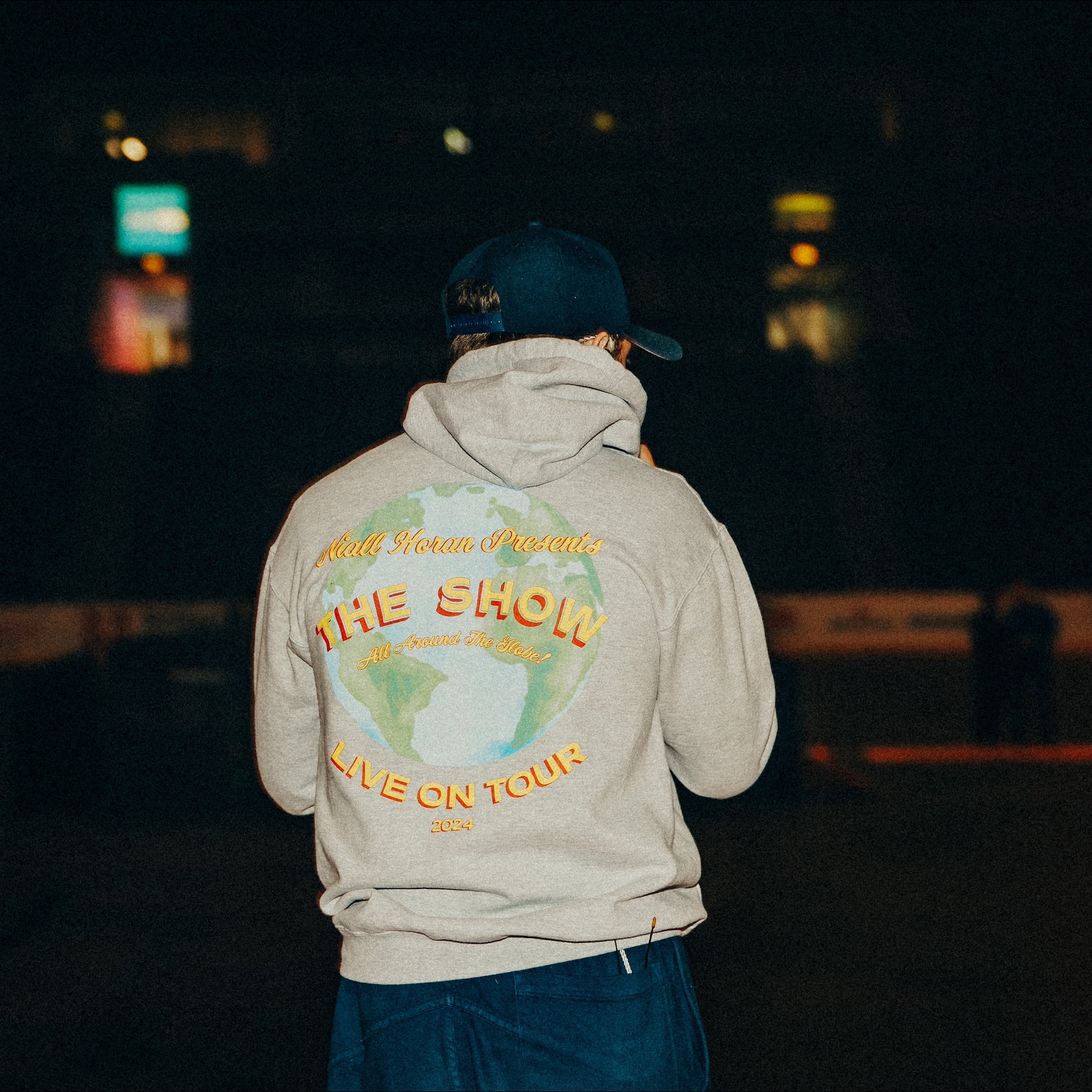 The Show World Tour Grey Hoodie in ringspun cotton and polyester. Featuring THE SHOW logo on the front left chest and world tour design on the back.